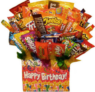 A butterfly hat, a $50 gift card to a millinery supply shop in NYC, and a birthday basket along with a note that reads, "Molly - on this most awesome occasion, the celebration of your birth, I wish you the very best of days. Also, don't eat all the candy in one go. I know I tell you that every time, but I feel it bears repeating. Happy Birthday, half-pint. - Wade"